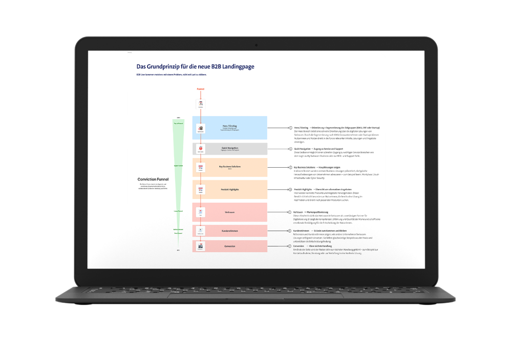 The Swisscom B2B website had evolved over many years without a unified visual or structural system.